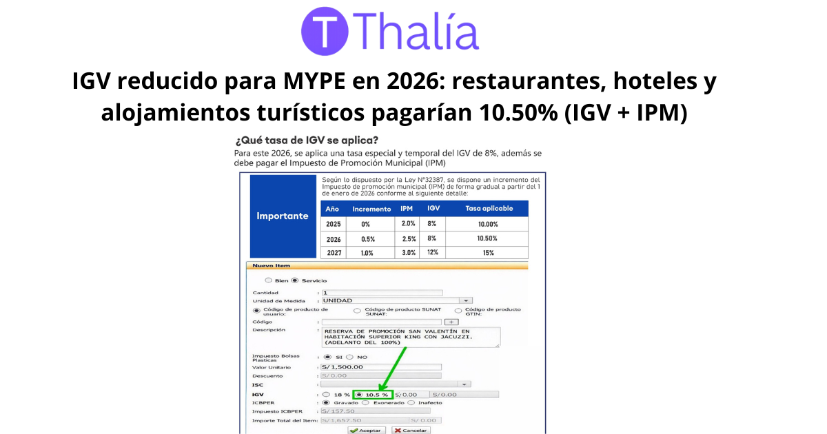 Si tienes una MYPE del rubro restaurantes, hoteles o alojamientos turísticos, toma nota: para el 2026 se aplica una tasa especial y temporal relacionada al IGV, con un componente adicional de Impuesto de Promoción Municipal (IPM).